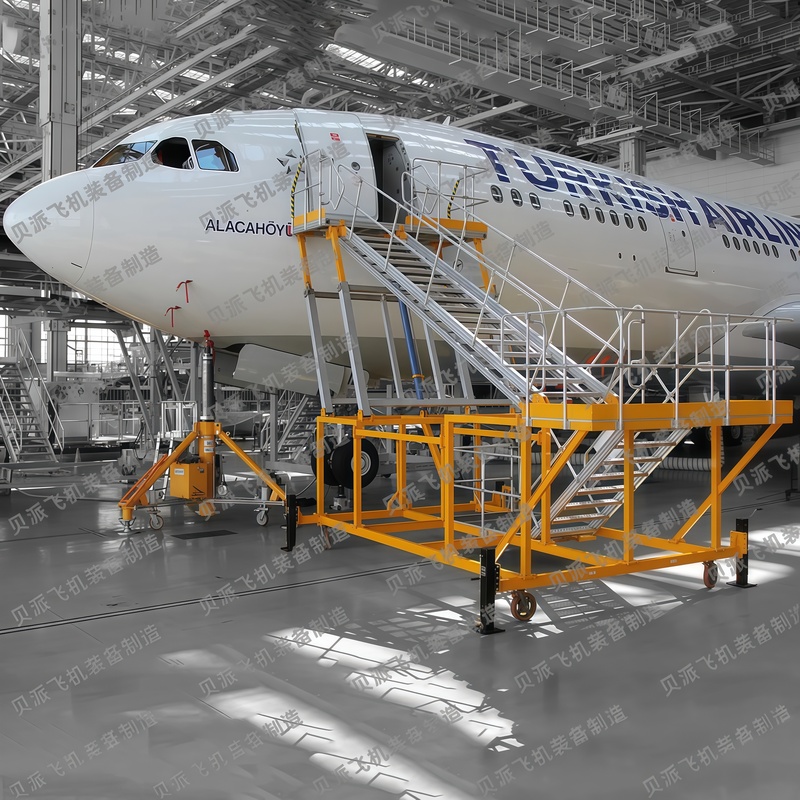 此外,所有关键连接部位均经过防腐、防滑及耐磨处理,适应各种复杂气候条件,延长使用寿命。贝派航空楼梯踏步集创新设计、坚固构造与高度适应性于一体,是现代化机场地面保障系统中不可或缺的重要组成部分,全面助力航空运营的安全性与效率提升。