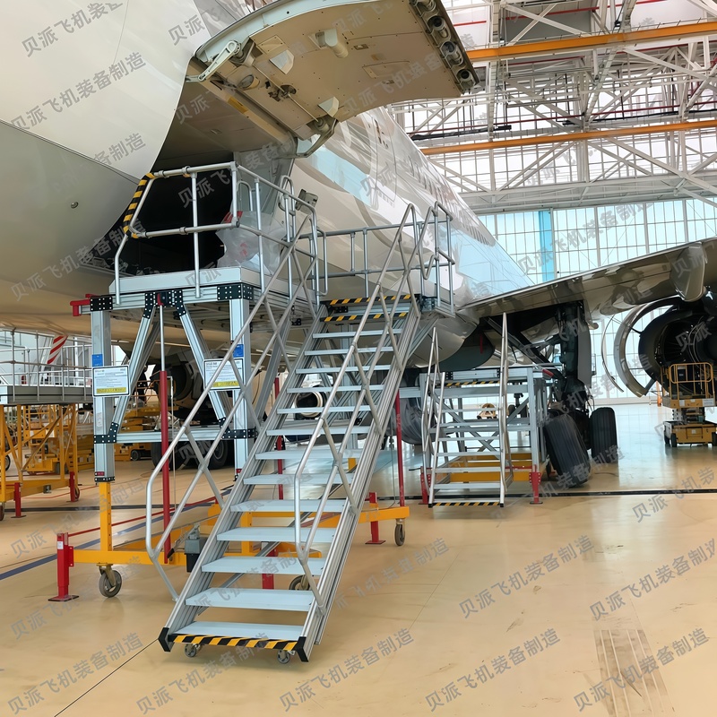 货舱门楼梯踏步专为安全高效进出空客 A320/A330/A340/A350/A380 和波音 737/777/787 飞机的前后货舱而设计。楼梯踏步采用重型钢和轻质铝制成,提供可调节或固定高度配置。它们配备可折叠栏杆、无痕硅胶保险杠和稳定支脚,以增强安全性和稳定性。其设计兼具耐用性和易用性,可根据特定的运营需求定制配置。